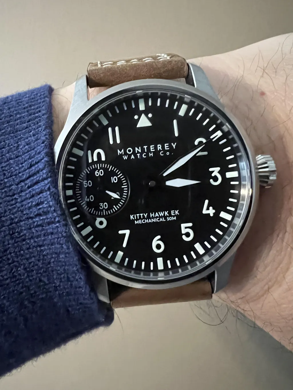 I first spotted the Kitty Hawk watch on line somewhere, maybe tik tok then looked into it and found Monterey to be a North Carolina based independent brand. I found I kept coming back to looking at the Monterey watch and finally ordered one. I have been very happy with it. Love the look, its hand wound which I actually like, nice leather strap that feels better and better the more I wear it. Count me in as a Monterey fan.