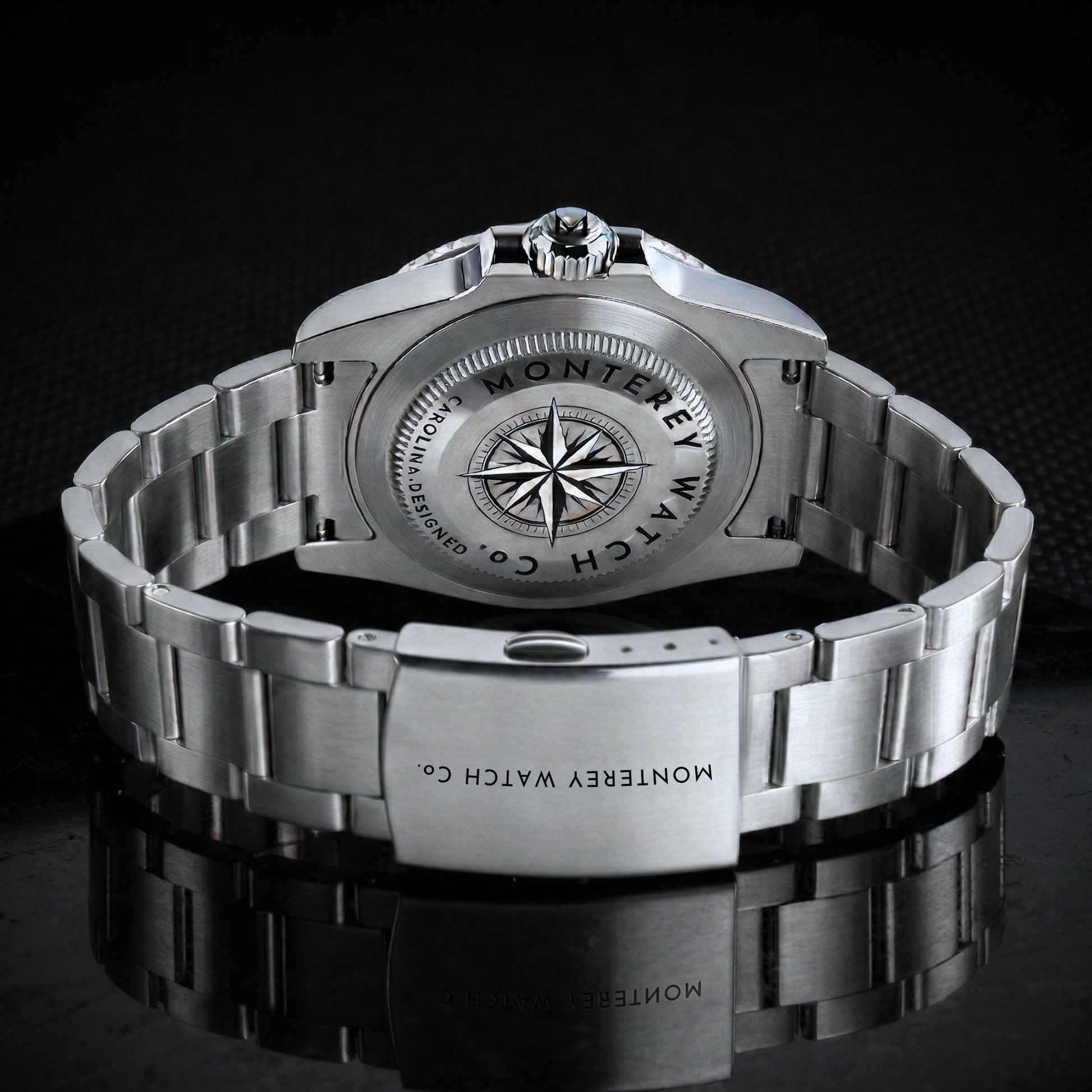• Caseback: Compass-rose design